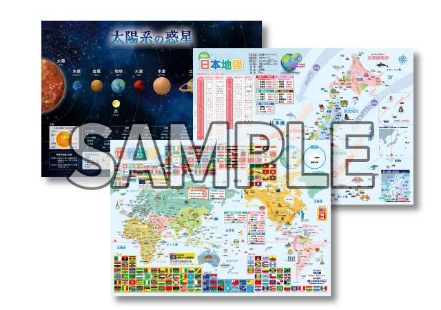 「【地理的】日本地図」「【地理的】世界地図」「太陽系の惑星」3点セット