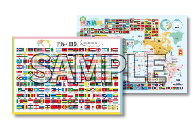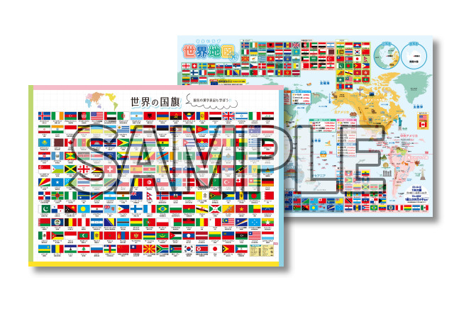 「【地理的】世界地図」「世界の国旗(漢字表記付き)」2点セット